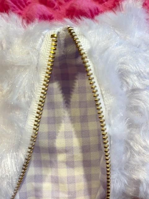 もこもこファーに、お花のお顔とチェック柄の耳がキュートなポップ系ポーチ🌈💕