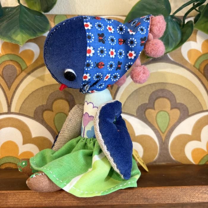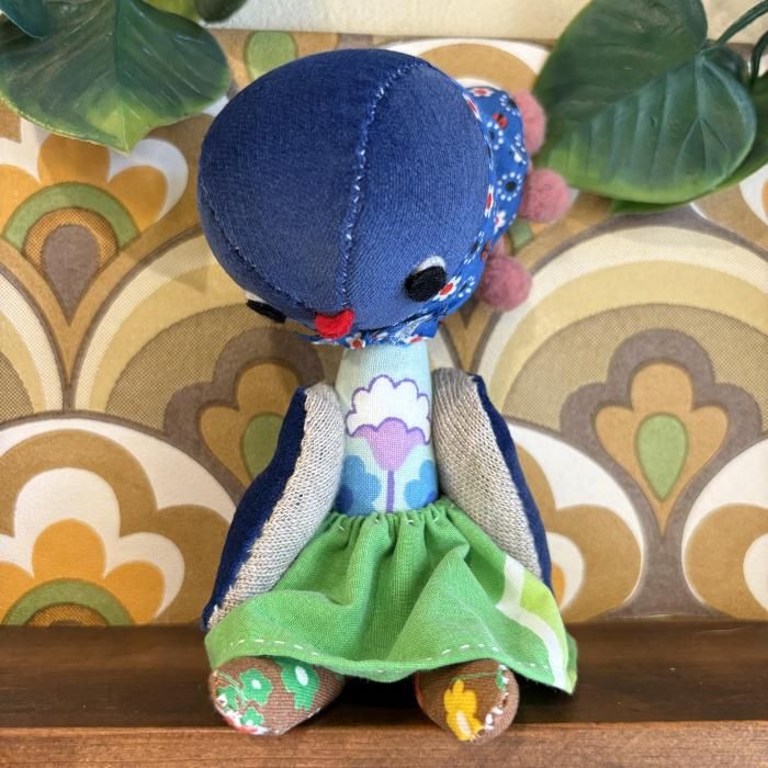 スカーフ、洋服部分、スカートにはヴィンテージ生地を使用しています。
