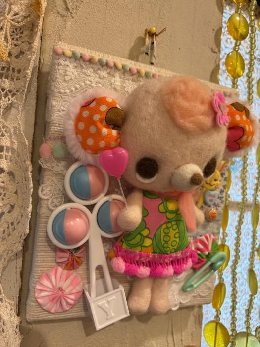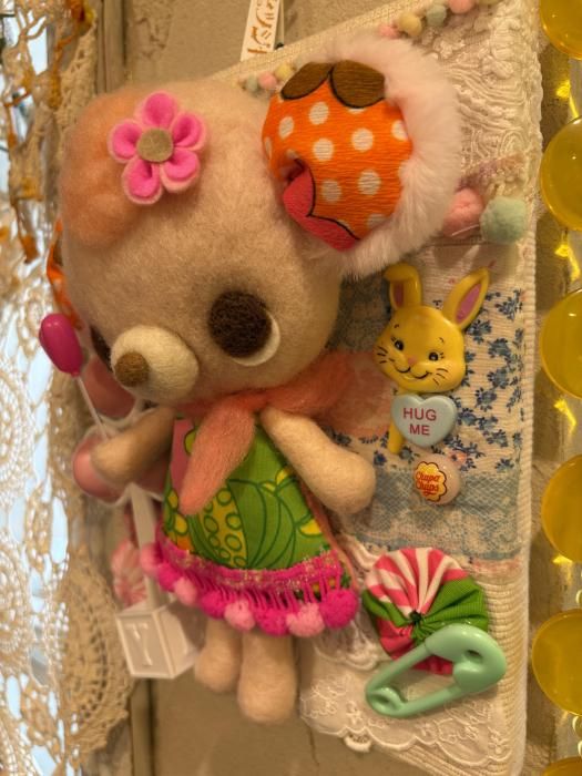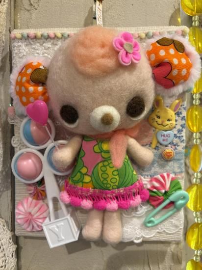 お顔部分は羊毛フェルト、、お洋服はビンテージ生地を使ったとても手の込んだ