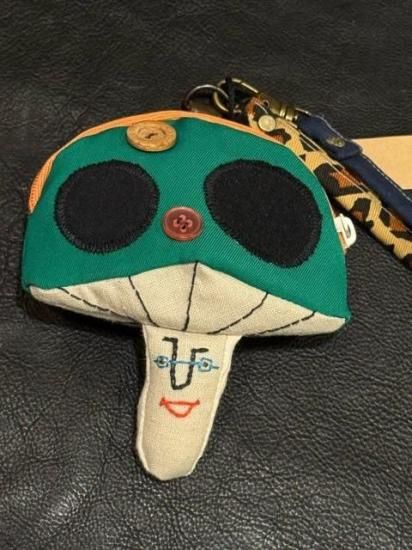 カオ刺繍のきのこのポーチ ★