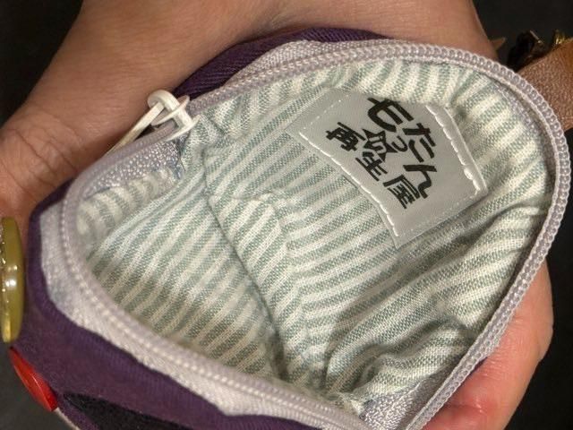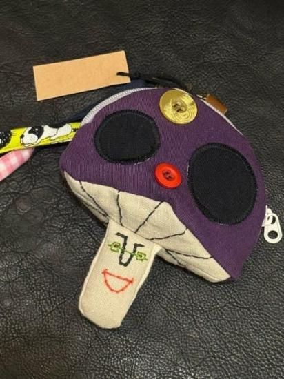 ●お顔刺繍のきのこポーチ ●濃ムラサキ(もったん)