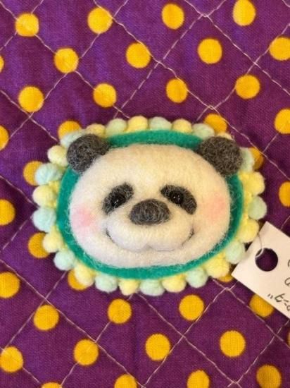 ●● 羊毛パンダ ブローチ(グリーン)●●●(cotucotu385)